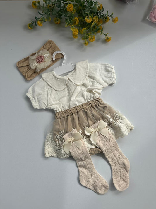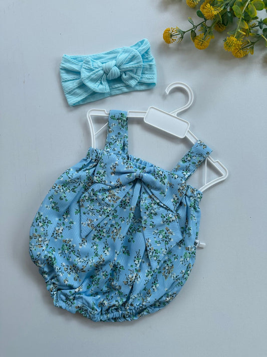 FLORAL ROMPER WITH HEADBAND AND SOCKS SET.